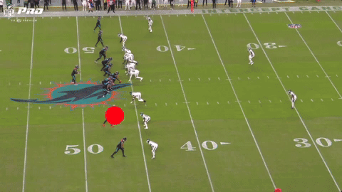Tyreek Hill ends up wide open. If you’re going to choose one guy to not cover on Miami’s offense, Tyreek Hill is a less than ideal choice.