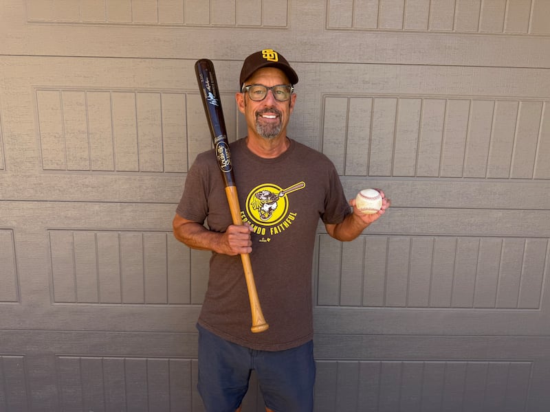 Paul Cooper shows the bat and signed baseball he received from Bo Jackson at the 1989 MLB All-Star Game. | Paul Cooper
